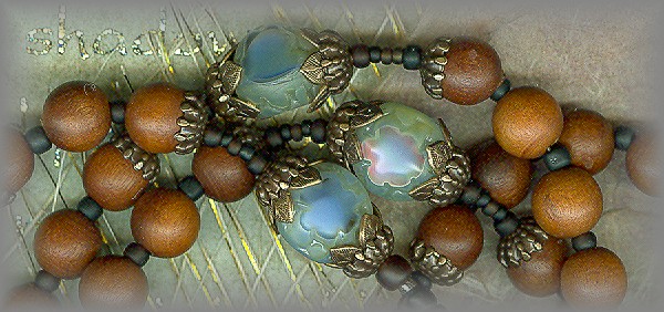 + AVE BEADS: The Ave beads are wood to carry the theme of the Franciscan Order. We have chosen a high end, finely grained wood with a beautiful natural finish and color. PATER BEADS: These old blue' 3 Window Beads' beads have three sides, reminding us of the triune God. Each of the three windows look into the heavenly blue. The glass cane is old and they were formed in old glass bead molds. A Perfect choice for Pater beads on this rosary dedicated to the living witnesses of Gianna! +