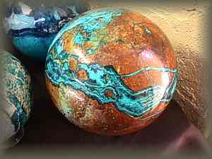 ... is used to create steel (?) - And those 2 and 3 in Pyrite Eggs are heavy! All the way from Peru! Turquoise from all over the world, each mine produces its own fingerprint and experts go about reading this information in the matrix and color. |